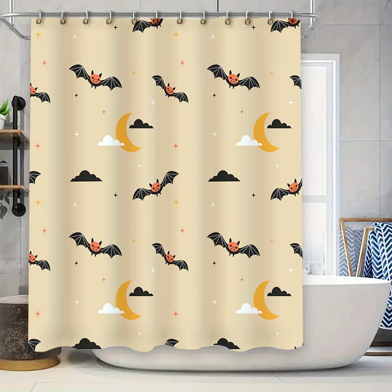 Halloween-themed Bat Moon Cloud Shower Curtain for Bathroom Decor Black Spooky Design Waterproof Fabric Perfect Gift Idea Size 1