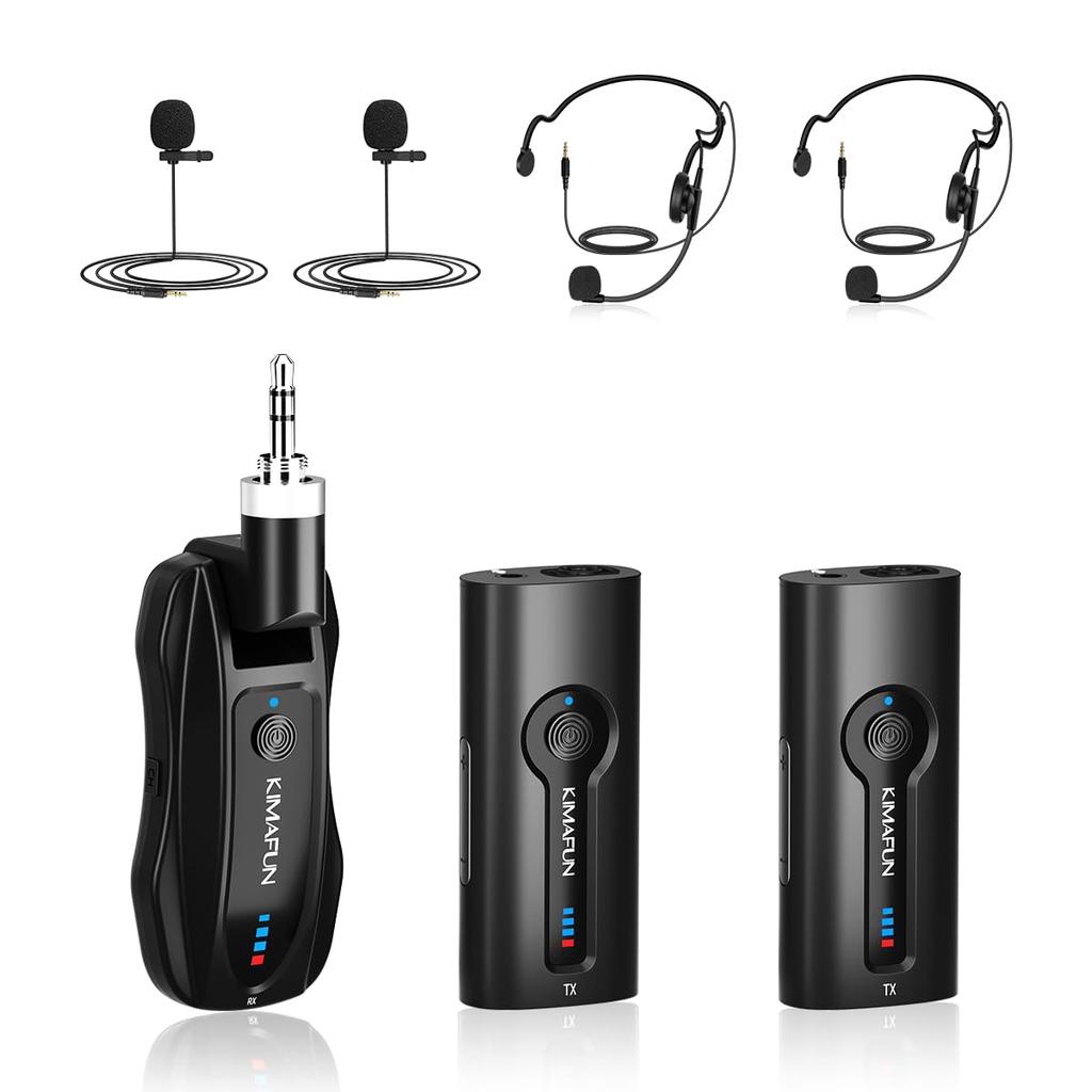 KIMAFUN 2.4G Wireless Lavalier Microphone System, Compatible with Two People Simultaneously, Plug & Play, Auto Pairing, Noise Reduction, 360° Sound Collection, External Microphone, 50m Transmission Range, Supports Speakers, Ideal for Classes, Lectures, Meetings, Events, and Briefings