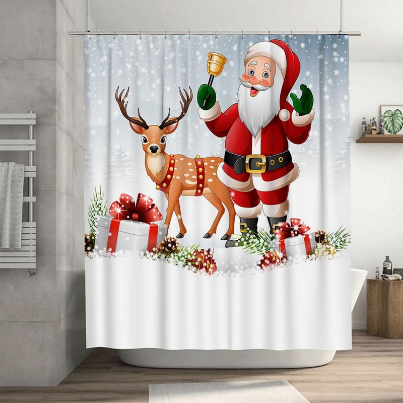 TU Christmas Shower Curtain Santa Claus Reindeer Holiday Festive Bathroom Decor Xmas Pattern Waterproof Home Textile Gift