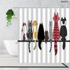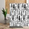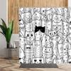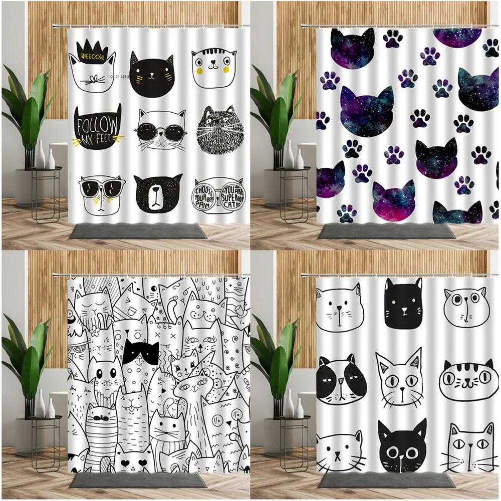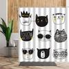 3D Cartoons Black White Cat Bathroom Waterproof Shower Curtain Simple Footprint Bathroom Curtains for Bathtub Screen with Hooks
