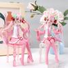 Hatsune Miku Anime figure Pink dress Sitting posture PVC model action toys Cherry pink cherry blossom decoration collect gifts