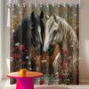 Waterfall Window View Shower Curtain Mountain Lake Scene Fabric for Rustic Country Bathroom Decor Nature Landscape Style