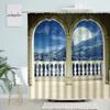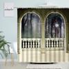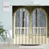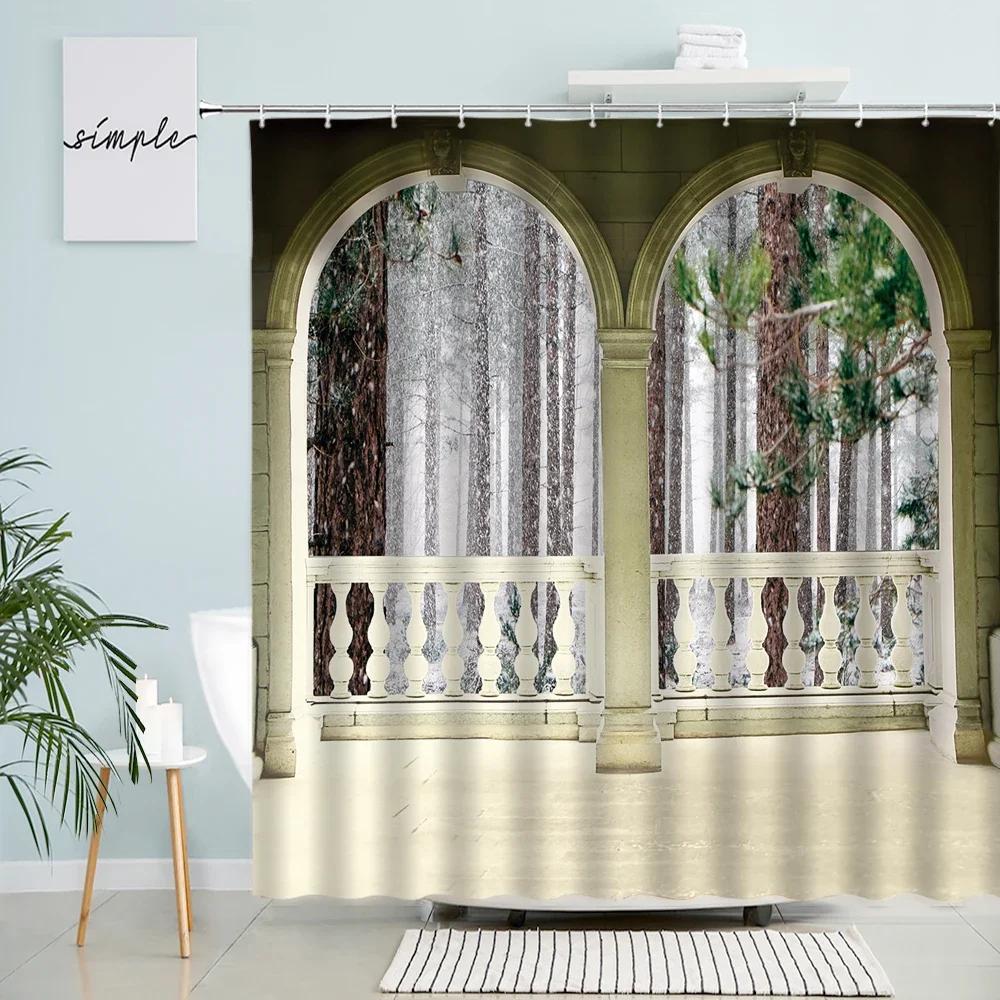 Winter Forest Scenery Shower Curtain Trees Snow Arched Doors Windows Natural Scenery Bathroom Decor With Hook Waterproof Screen