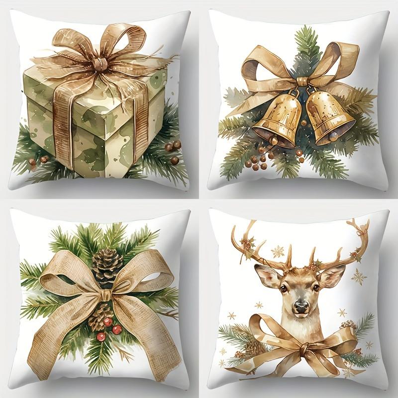 Christmas Decorative Pillows With Gift Bell Deer Pattern Polyester pillowcase, sofa decorative cushion cov Headboard Pillow
