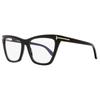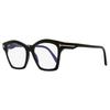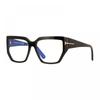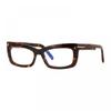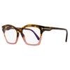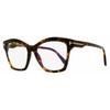 Tom Ford Square Full Rim eyewear features a Dark Havana frame and Clear Blue Light Block lens. This eyeglass combines contemporary and luxurious design, making it versatile for various styles. The lenses offer blue light blocking capabilities to protect your eyes from harmful light emitted by digital screens.