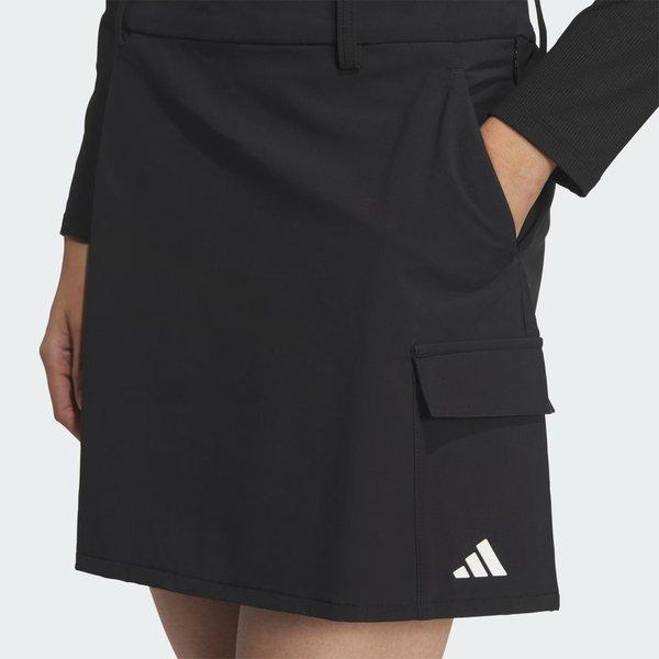 The Adidas Golf Women's 4-Way Stretch Skirt SS is crafted in a regular fit, offering comfort during wear. The 4-way stretch fabric allows for excellent flexibility in all directions, providing remarkable freedom during golf swings and movements. It includes belt loops, a zip fly, hand pockets, and side cargo pockets for added functionality. The back pleats design presents a natural silhouette when moving, and the inner shorts provide additional protection.