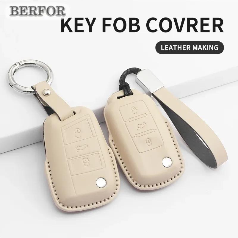 Car Key Cover For VW Volkswagen MK7 Golf 7 Passat Tiguan MK2 For SEAT Ateca Leon FR 2 PU Car Key Protector Shell Accessories