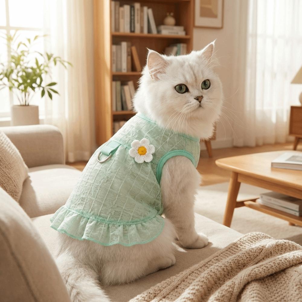 Flying Sleeves Dog Cool Dress Breathable Mesh Pet Floral Skirt Summer Pet Clothes Spring Season