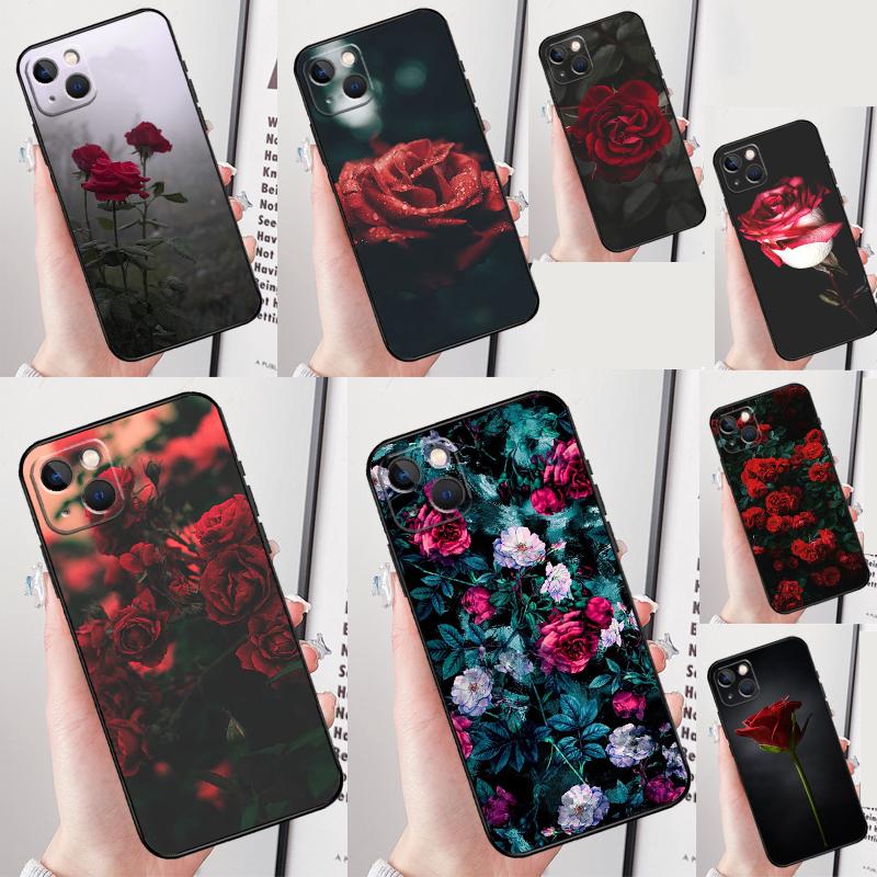 Red Rose Flower Phone Case For iPhone 16 Pro 15 Pro 11 13 14 Pro Max 12 Mini XR 16 15 Plus 16e Cover Shell