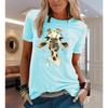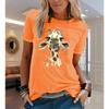 COTTON 100% Animal Flower Print Short Sleeve T-shirt Woman Aesthetic Clothes Women Clothing Graphic T Shirts Oversized Tops