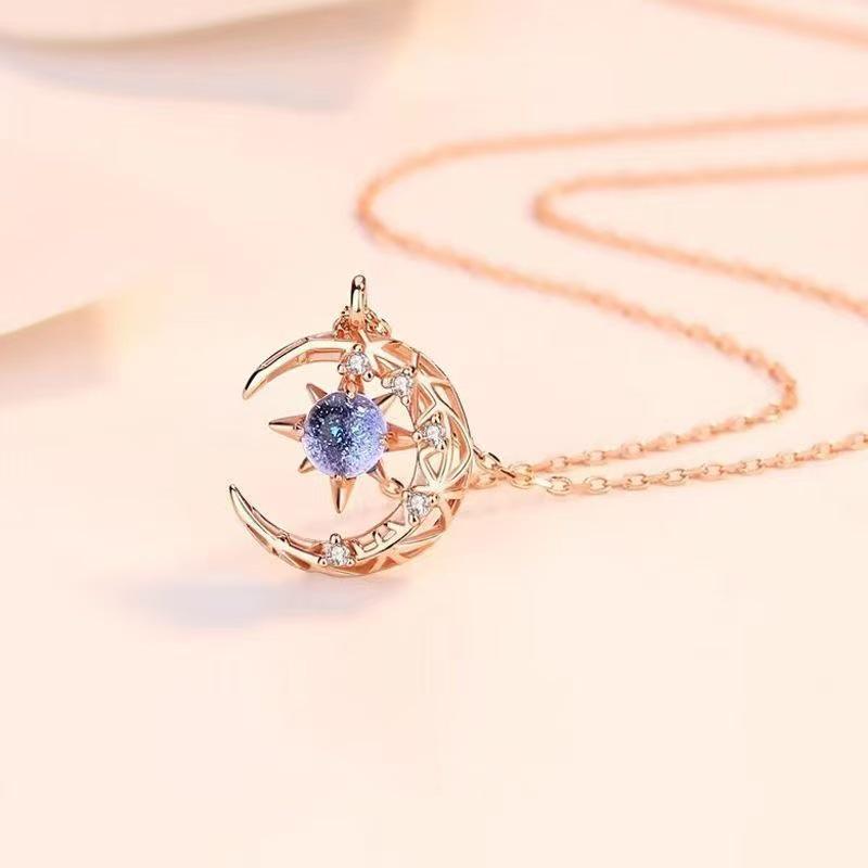 Women's Gold Pendant Necklace with Star and Moon Design—Versatile Clavicle Chain