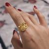 Retro Hydrangea Open Ring for Women - Gold Plated Brass, Chinese Style Floral Jewelry