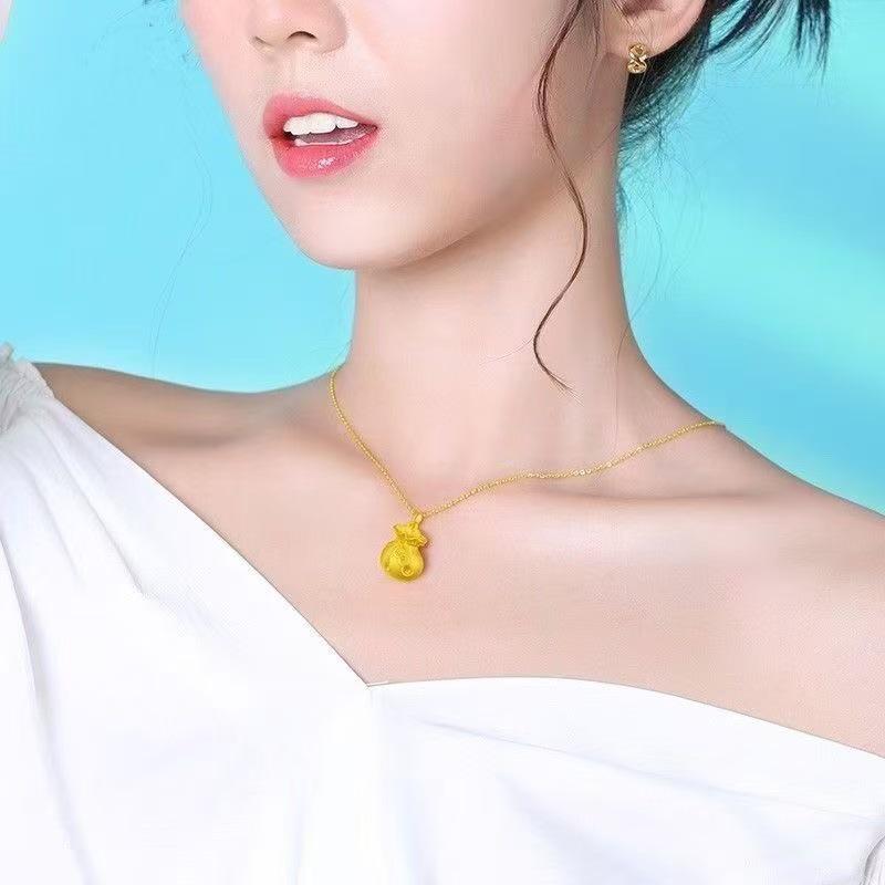 Versatile Gold Triple-Coin Lucky Bag Pendant Necklace for Women - Elegant O-Chain Design