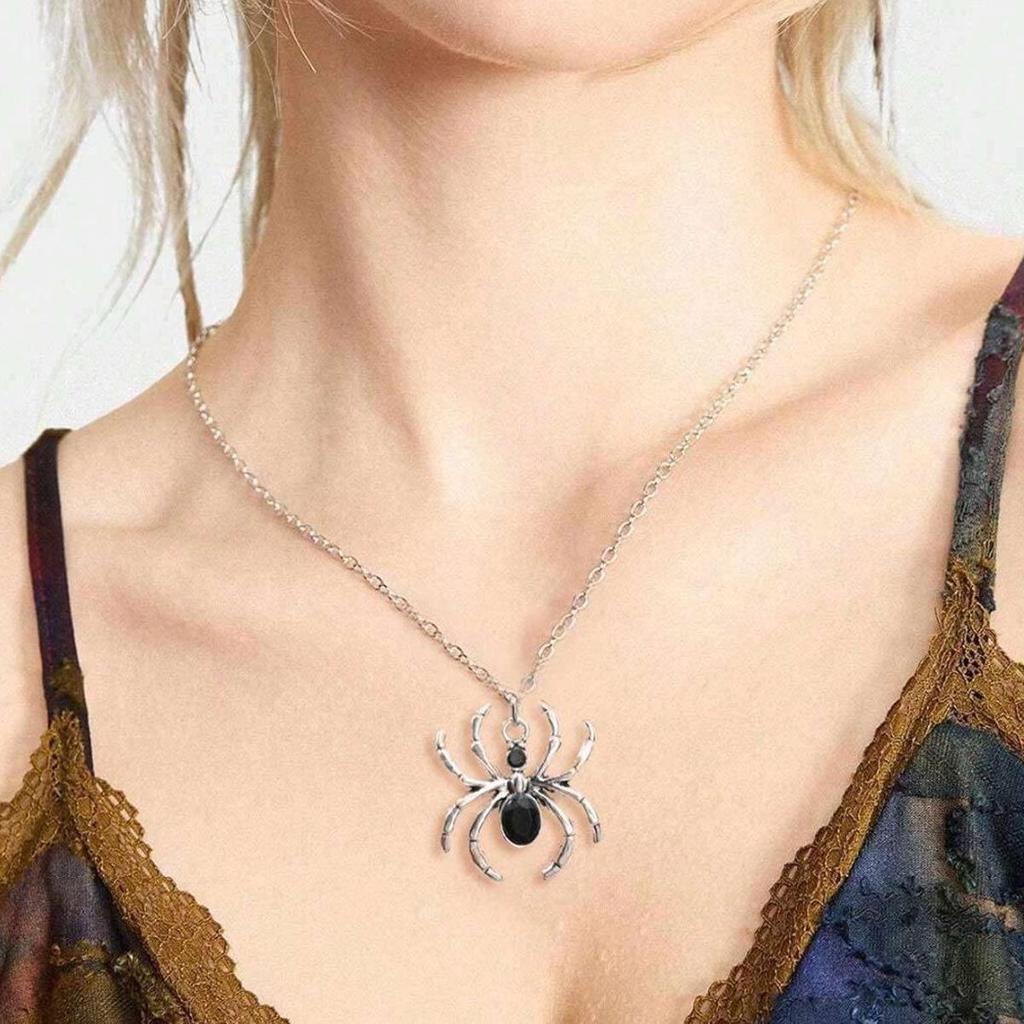 Retro Gothic Spider Rhinestone Necklace & Earrings Set for Halloween