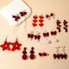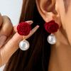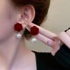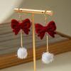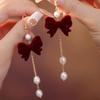 Bowknot Wine Red Bow Drop Earrings Pearl New Year Earrings Elegant Red Velvet Bow Earrings Girl