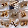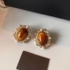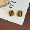 2025 Retro Fashion Geometric Stud Earrings in Tiger Eye & Cat Eye for Women