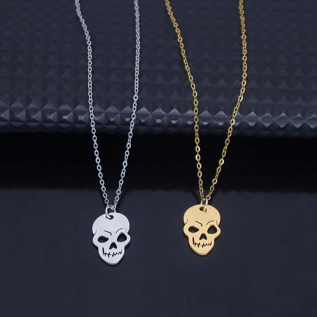 Fashionable Stainless Steel Halloween Skull Pendant Necklace for Women - Versatile Clavicle Chain Jewelry