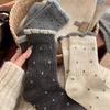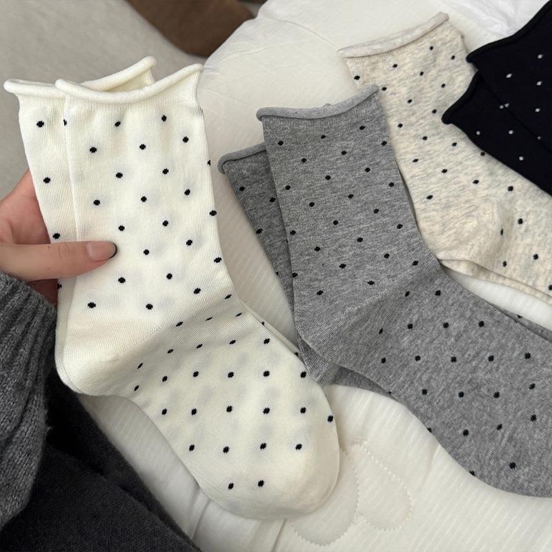 Women's Mid-Calf Rolled Hem Polka Dot Cotton Socks, Breathable & Anti-Odor, Japanese Style.