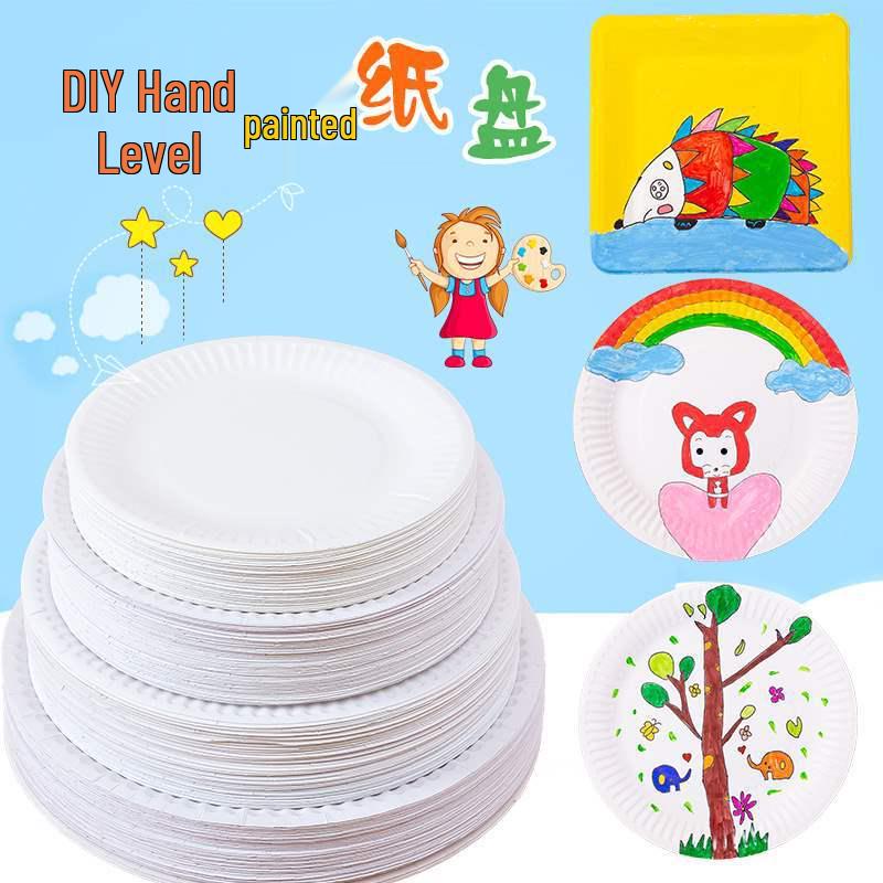 Children's Disposable White Paper Plates for Painting, Drawing, and Crafts - DIY Craft Materials for Cake and Kindergarten Activities.