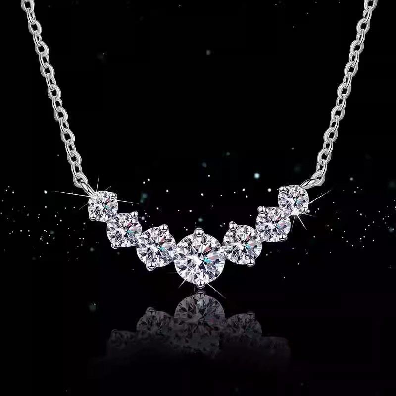 Elegant Women's Moissanite & Zirconium Silver Pendant Necklace - Shiny Choker Chain