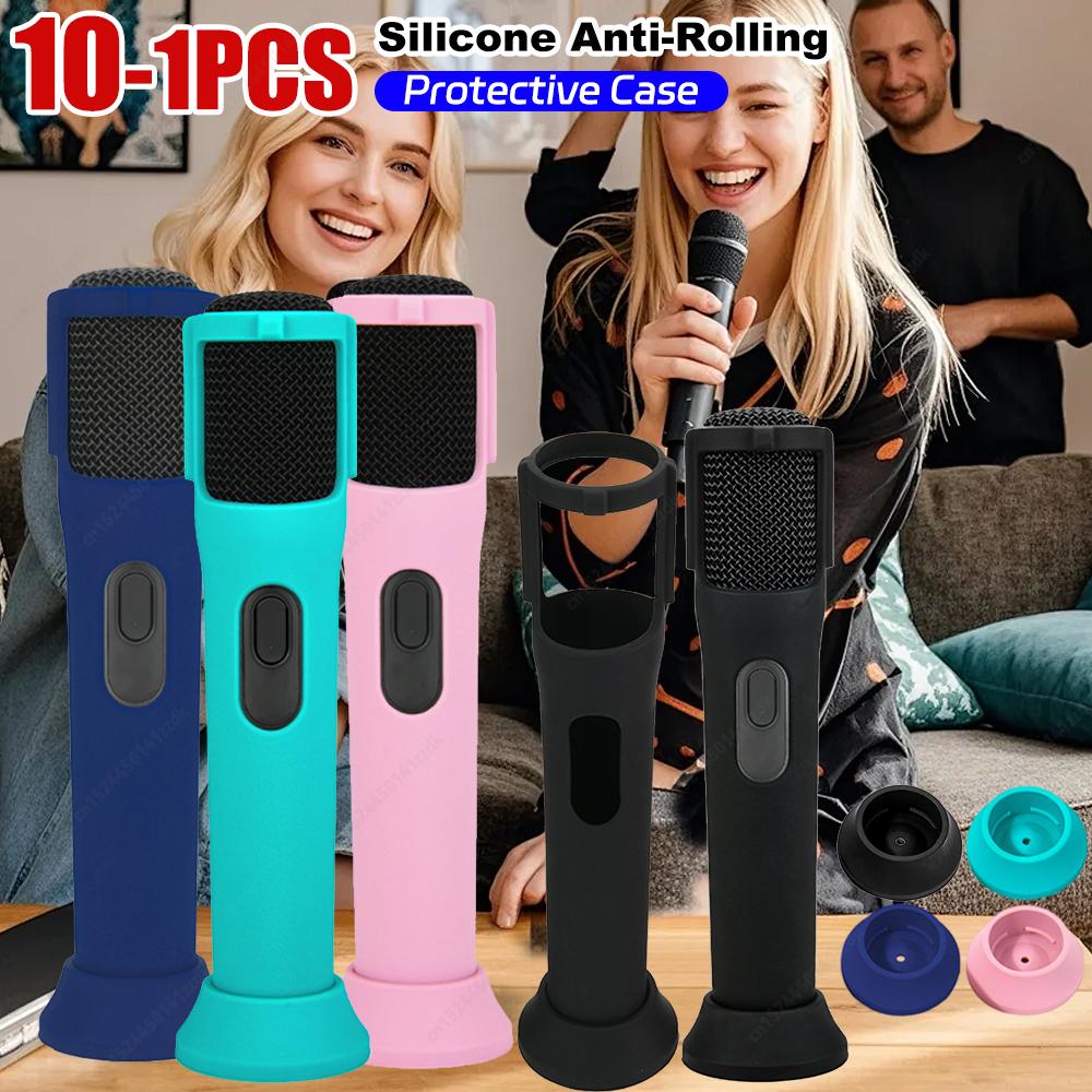 1-10pcs Silicone Protective Case for JBL PartyBox Wireless Microphone Case Anti-Rolling Mic Sleeves Microphone Stand Non-slip Co
