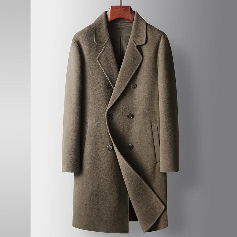 Men's Coat Autumn and Winter Pure Wool Trench Coat Double-breasted Long Middle-aged and Young People Business Double-sided Casual Coat
