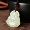 Natural Afghan White Jade Maitreya Buddha Guanyin Pendant - Laughing Buddha Couple Style Jade Stone Gift.