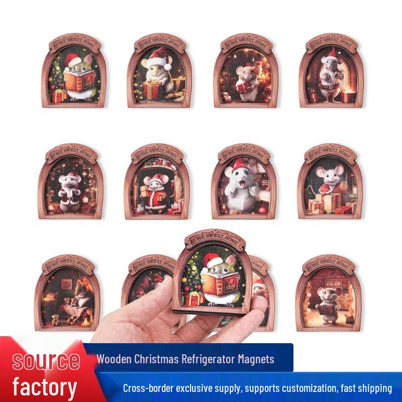 MZCT181-192 3D Wooden Christmas Mouse Hole Refrigerator Magnet & Memo Holder