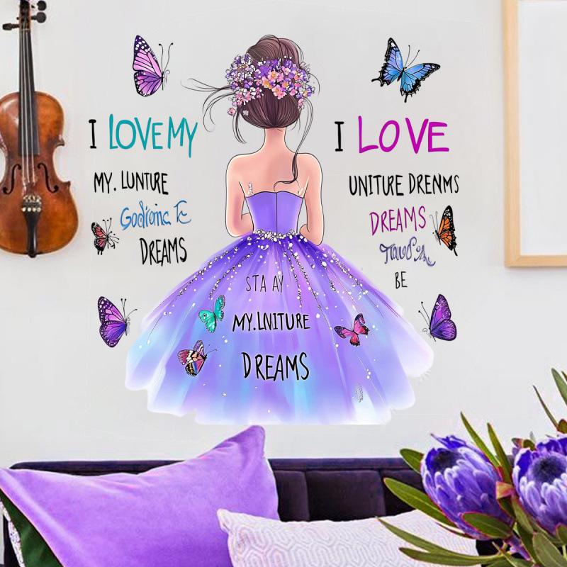 Creative Butterfly Girl English Wall Sticker - Self-Adhesive Decor for Background Walls