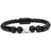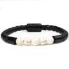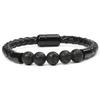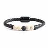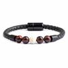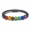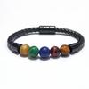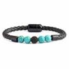 New European & American Men's Stone Beaded Leather Bracelet with Magnetic Buckle