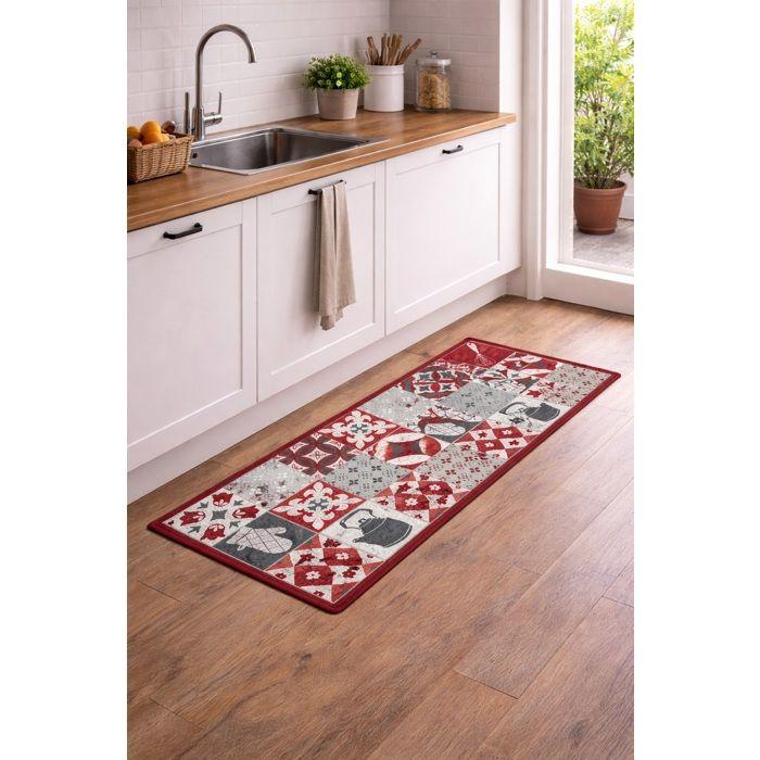 Tapis de cuisine - EDEN - 50 x 120 cm - Motif patchwork - Antidérapant - Rouge