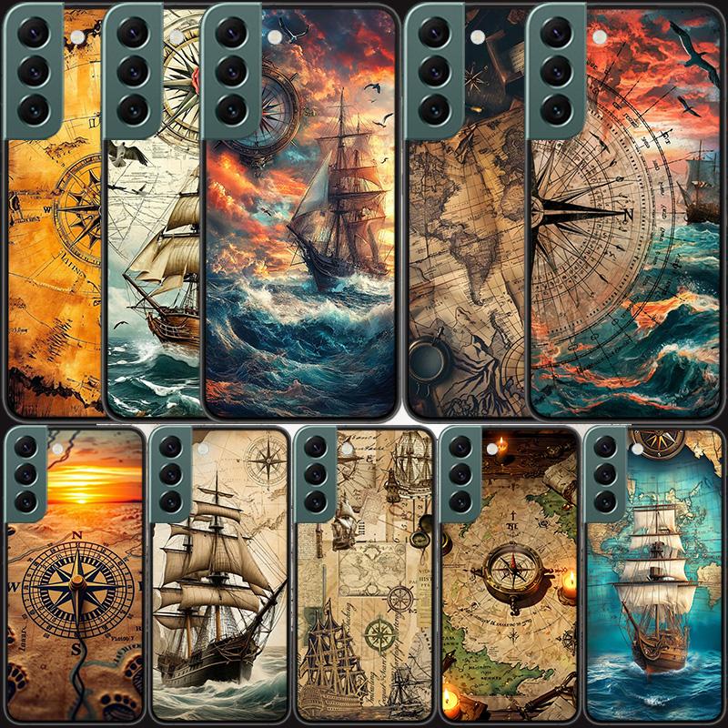 Compass Map Voyage Phone Case For Samsung Galaxy S22 S25 Ultra S21 S10 Plus S26 Edge S20 S23 S24 FE Cover Silicone Soft TPU