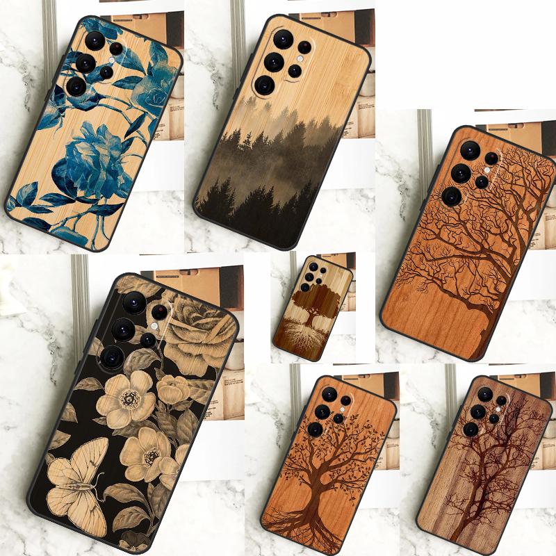 Tree Flower Bamboo Wood Cover For Samsung Galaxy S24 S23 S22 S21 S20 FE Ultra Plus S8 S9 S10 Note 10 20 Ultra Case