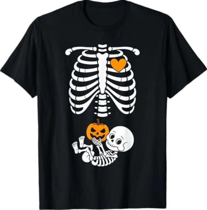 Halloween Skeleton Baby Rib Cage Maternity Pregnant Pumpkin T-Shirt