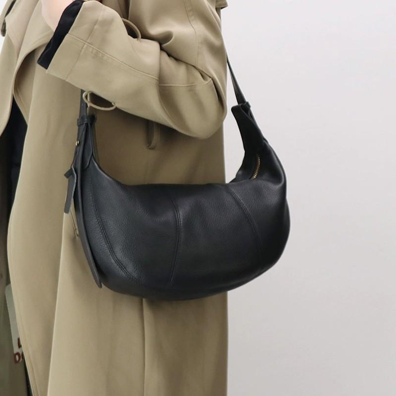 All-matching Croissants Authentic Leather Dumpling Bags Women's Top Layer Cowhide Commuting Shoulder Large Capacity Niche High-quality Feel