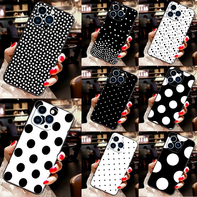 Black And White Polka Dot Protective Cover For iPhone 11 14 12 13 Pro Max Mini X XR XS Max 7 8 Plus SE 2020 Phone Case