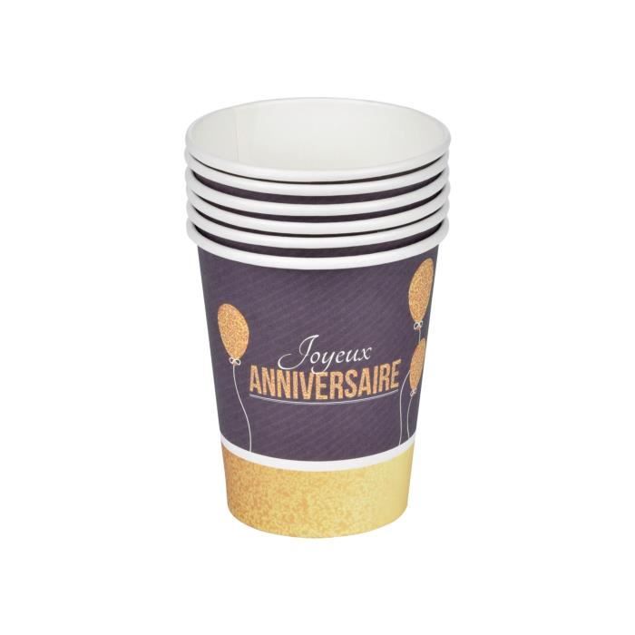 Lot de 6 gobelets en papier Ballon - 25 cl - Ø 7,5 cm - Or