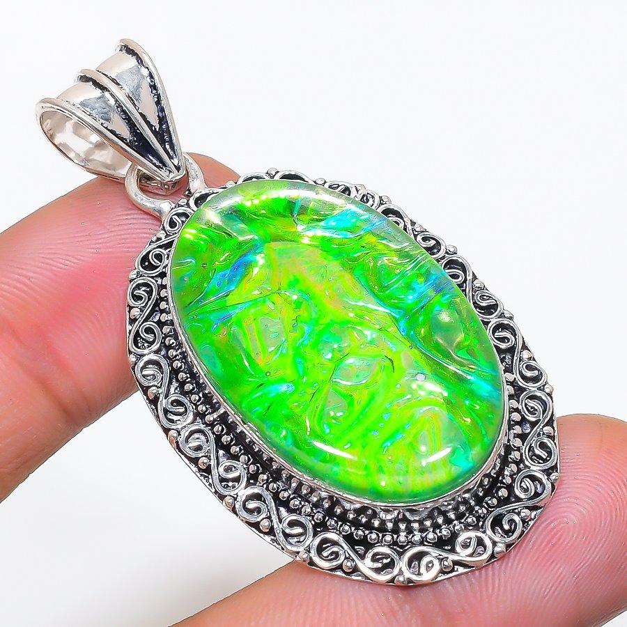 Natural Green Triplet Opal Gemstone 925 Sterling Silver Pendant 2.25" AP-14135