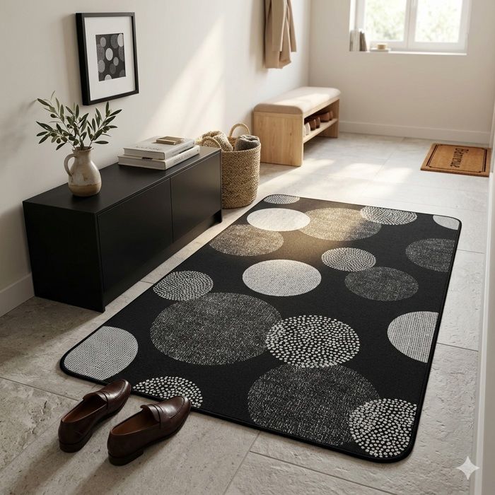 Tapis d'entrée - EDEN - Oxanas - 45 x 120 cm - gris motif cercles - antidérapant