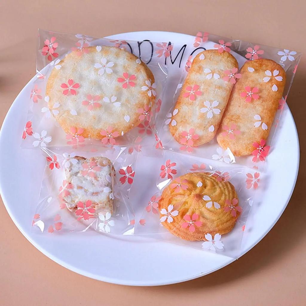 100Pcs Cherry Blossom Drawstring Candy Bag Snowflake Crisp Baked Dessert Snack Packaging Bag Party Gift Bag