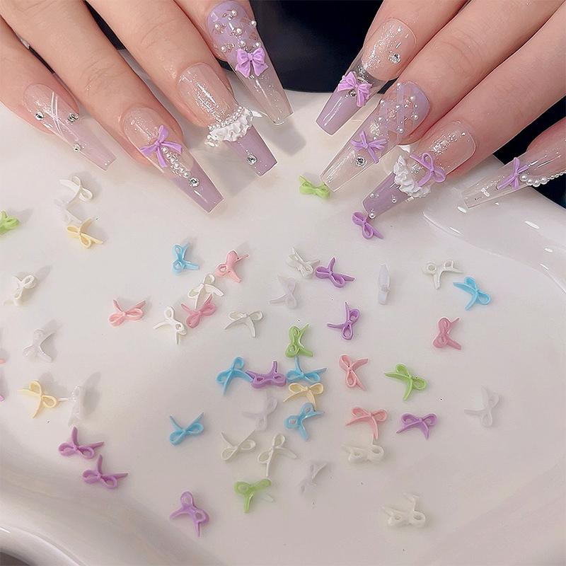 50Pcs For A Chic And Trendy Manicure Look Ribbon Bowtie Nail Charms Light Luxury Ins-Style Nail Art With 3D Resin Decor