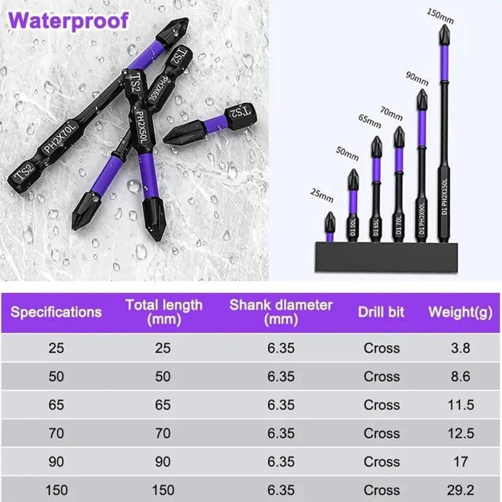 6Pcs Magnetic Screwdriver Bits Non-slip Shockproof Phillips Impact Bits Hex Shank Alloy Steel Bits Suitable for Power Tools