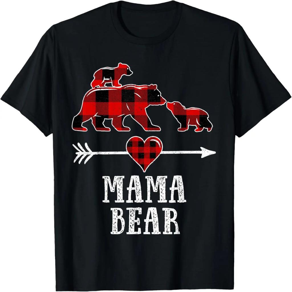 Mama Bear 2 Cubs Shirt, Christmas Mama Bear Plaid Pajama T-Shirt