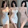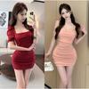 Pure desire sexy Spice Girls mesh suspender dress women's summer new slim and thin off-the-shoulder hip skirt