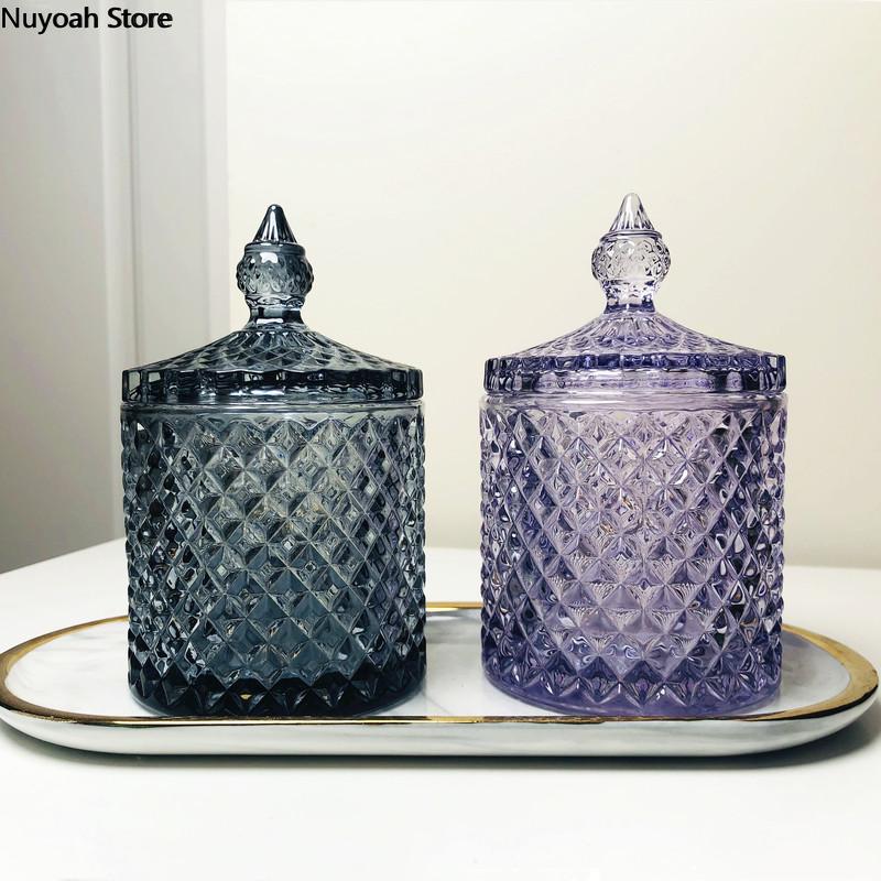 European Style Crystal Glass Storage Jar Creative Candy Jar Home Desktop Jewelry Cosmetic Swab Box Candle Holder Home Decoration
