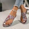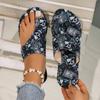 Large size cool slippers women's summer new flat bottom printing set toe style flat heel