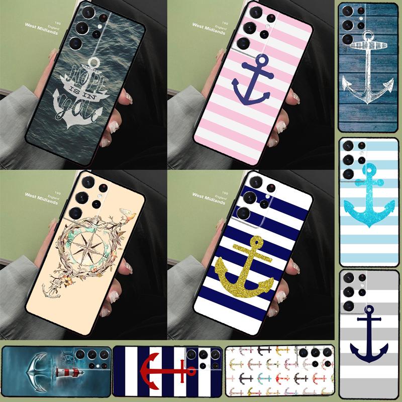 Stripes Anchor Boat Ship Phone Case For Samsung Galaxy S24 Ultra S9 S10 S20 S21 S22 S23 Plus S24 FE S25 Ultra Cover