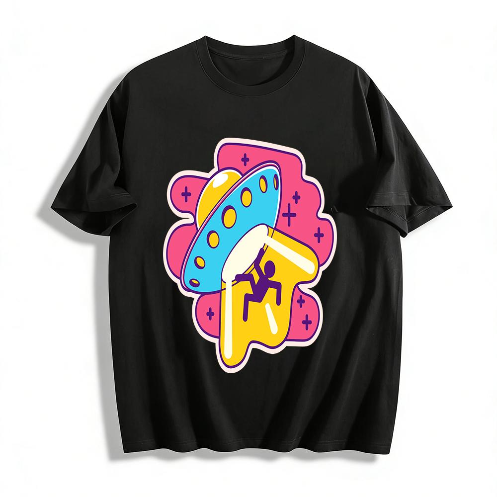 Funny UFO Abduction Graphic Print T-Shirt Unisex Sci-Fi Casual Cotton Tees For Men Women Pure cotton T-shirt