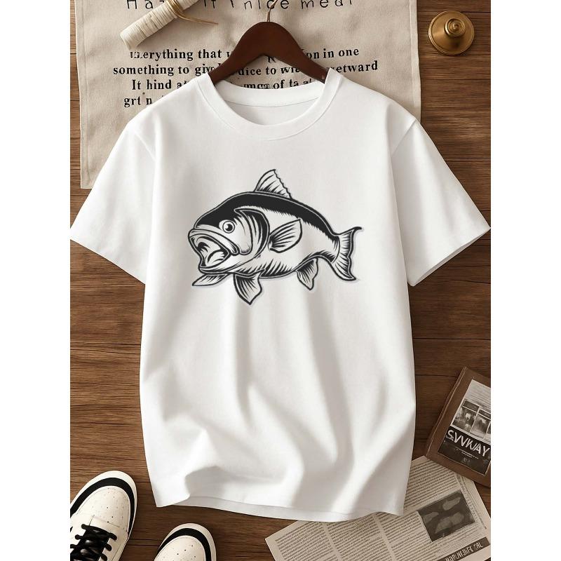 Men'S Funny Fishing Graphic T-Shirt - White Casual Round Neck Short Sleeve with Jumping Fish Print - All-Season Comfort Fit for Outdoor Activities