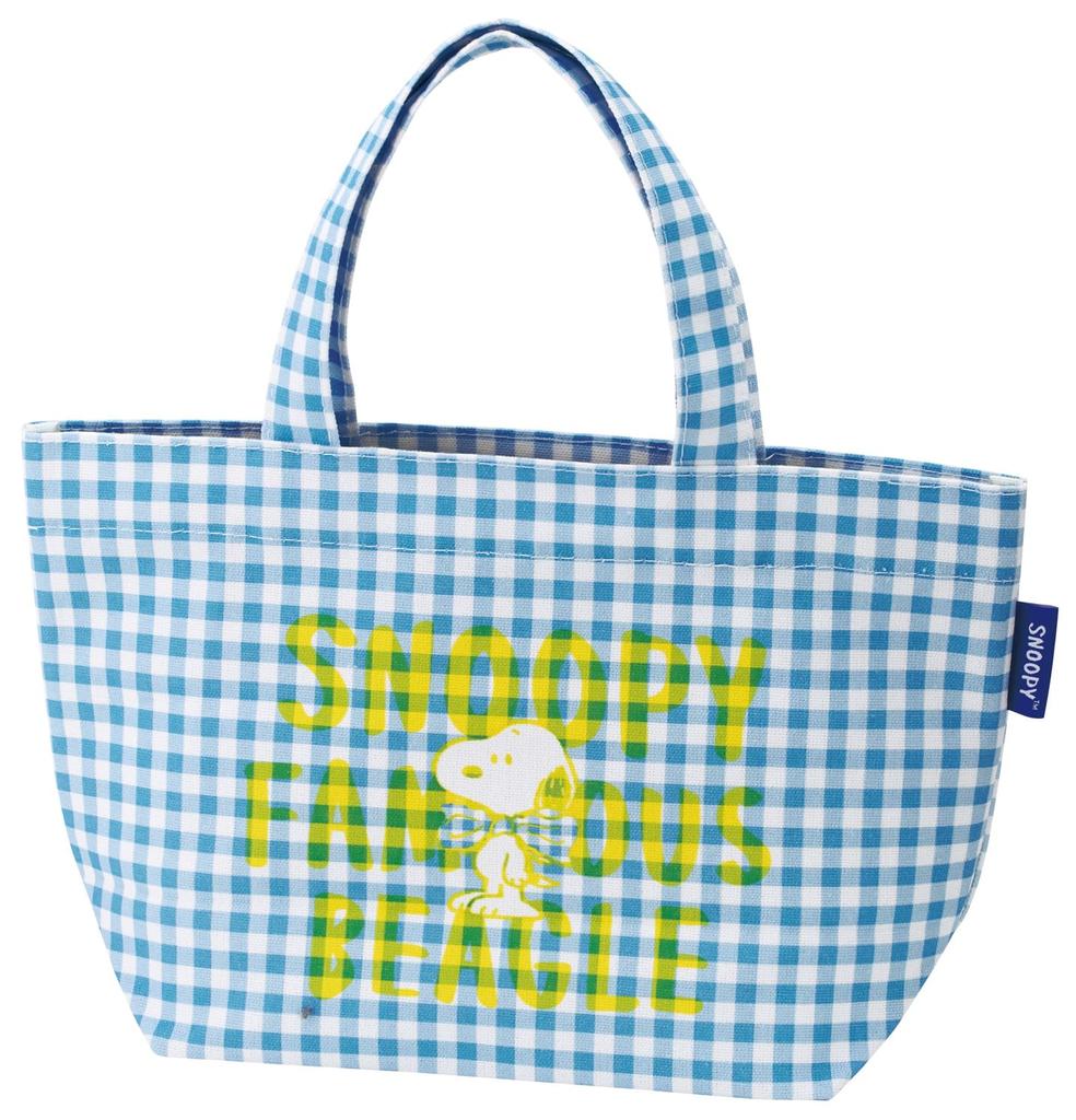 Skater Lunch Canvas Tote Snoopy Check Blue Bag, Bag, Logo, YEB1N-A